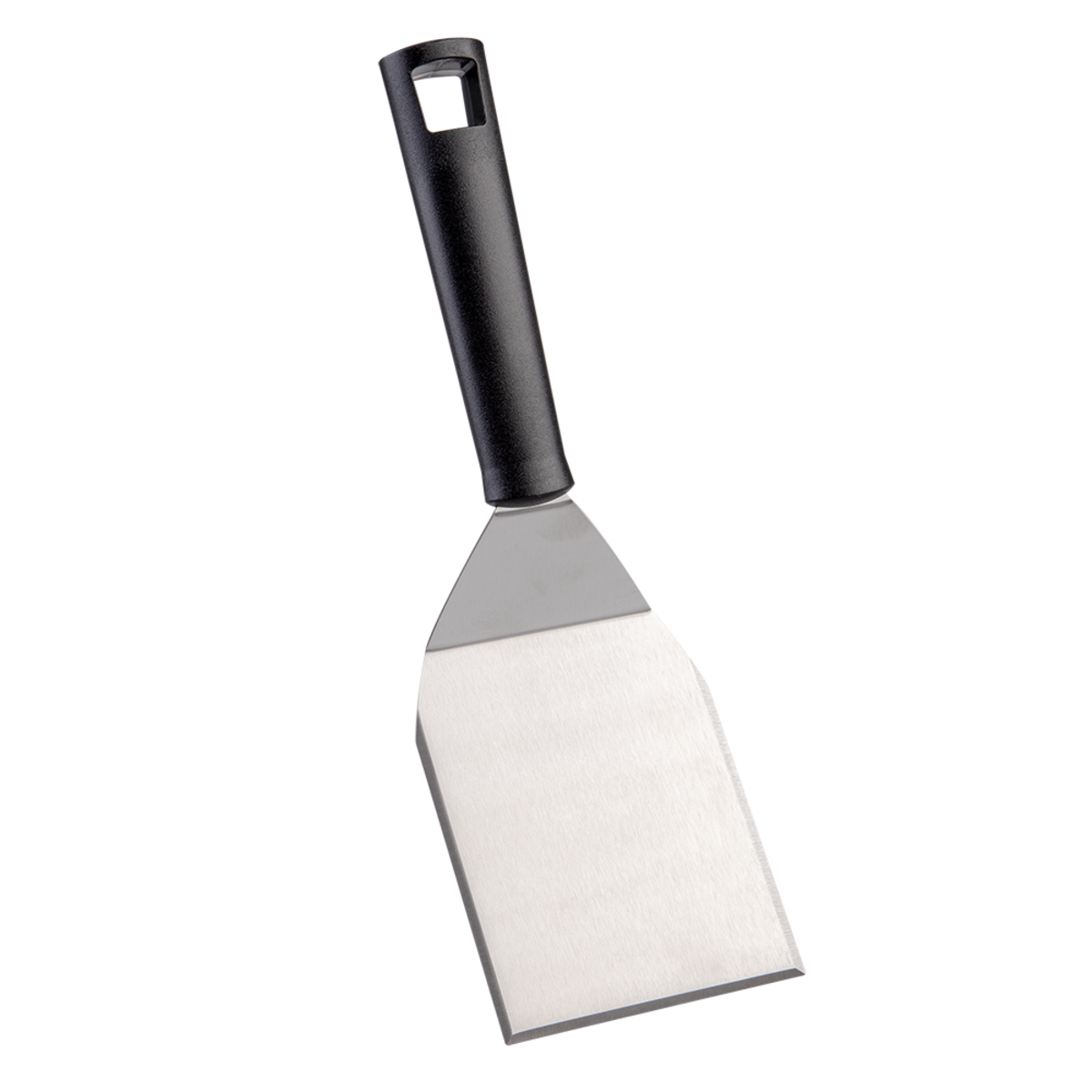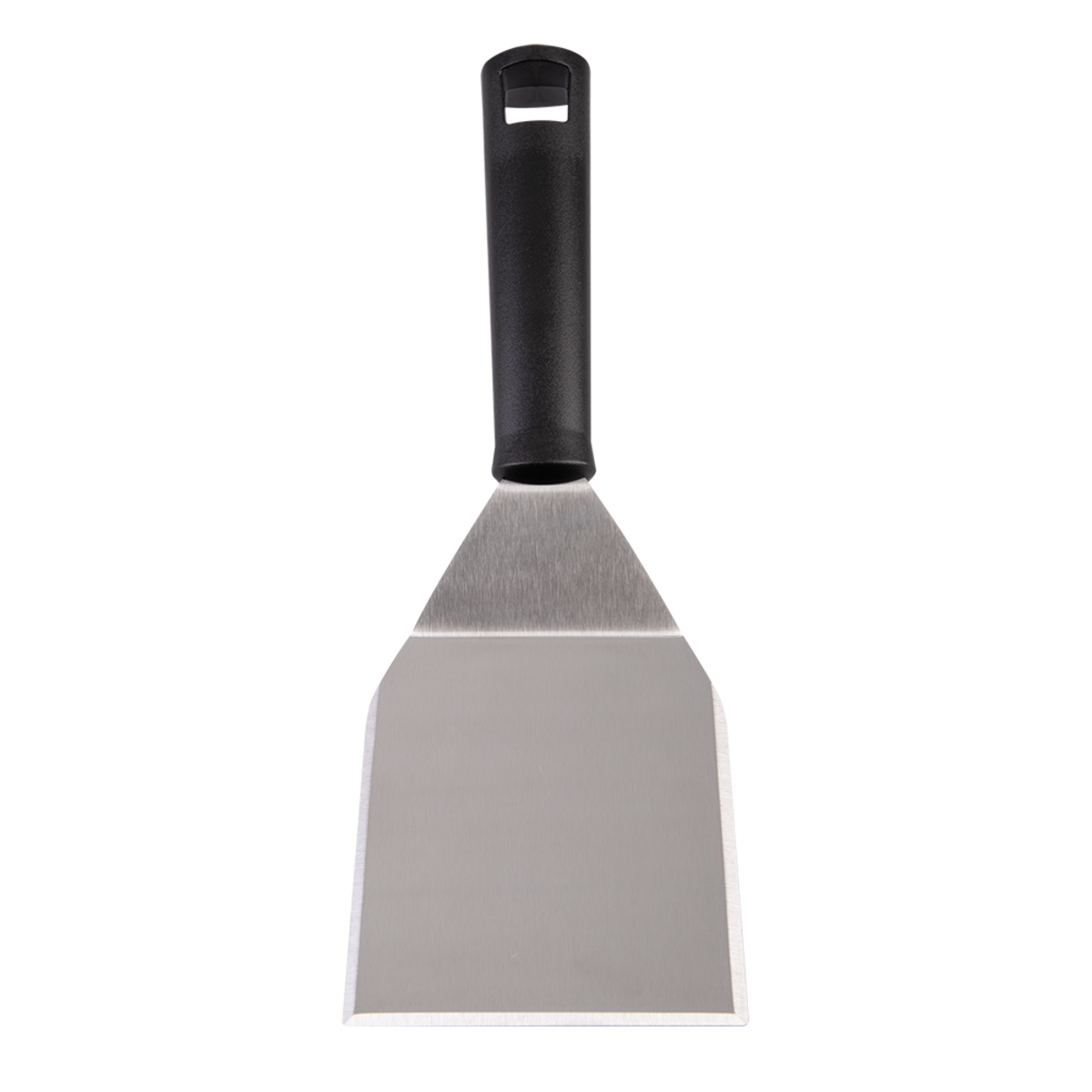 Constructed from durable stainless steel, this premium BBQ spatula offers strength, precision, and reliability for all your outdoor cooking needs. Its wide head handles everything from thick burgers to delicate fish, while the bevelled edge slides under food with ease. The long handle keeps your hands safely away from the heat, and the integrated hanging loop offers convenient storage.