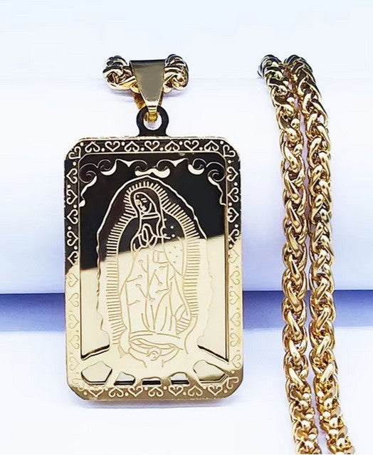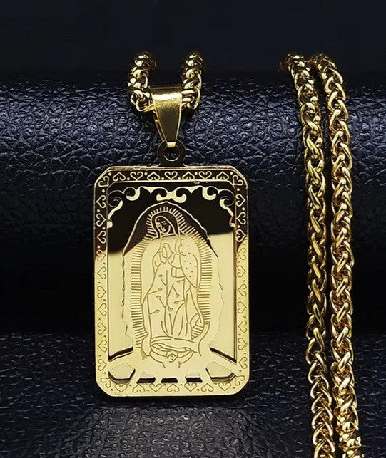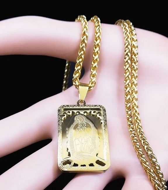 Virgin Mary Medal Our Lady of Guadalupe Necklace Stainless Steel Jewellery Gold