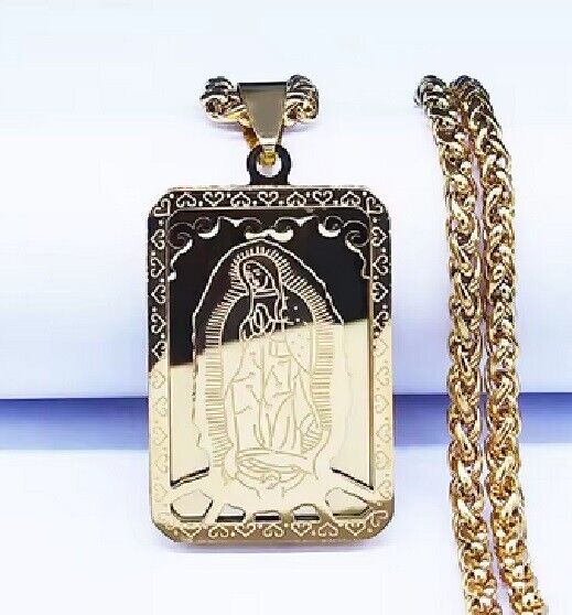 Virgin Mary Pendant Religious Our Lady Medal Necklace Stainless Steel Golden