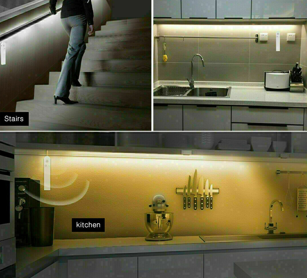 Warm White Battery Operated Motion Sensor Cabinet Light LED Strip Under Bed 3M