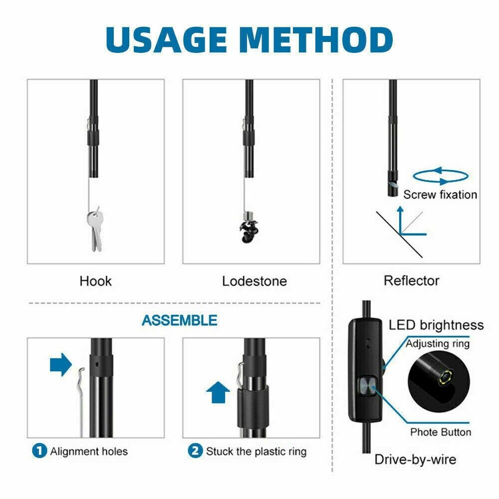 - HD 640*480P,this endoscope would drill into every invisible corner,and presents you with real time video and photo of inner machine,hermetic space or invisible details.