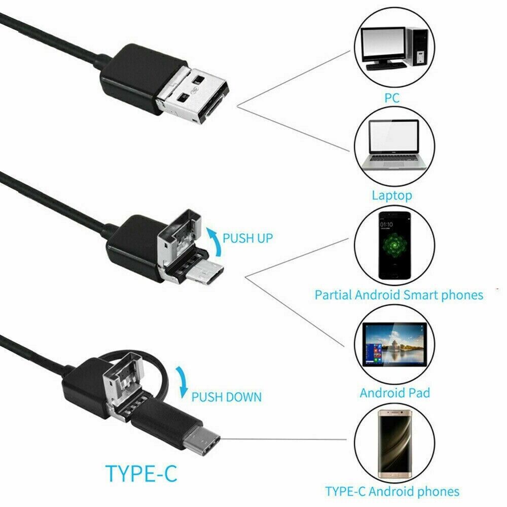 Waterproof HD Endoscope USB Type-C Borescope Inspection Snake Camera Android 5M