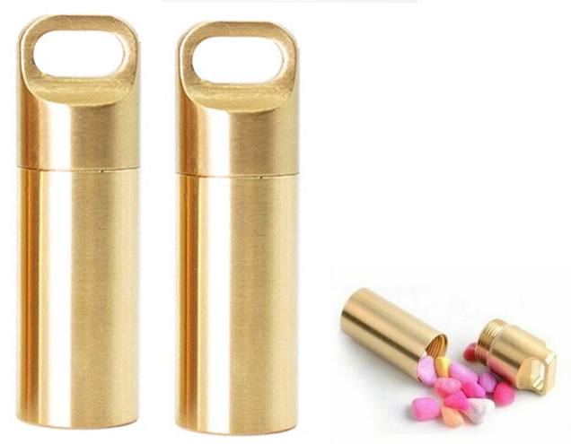 Waterproof Pill Box Case Brass Container Keyring Medicine Capsule Holder Medium