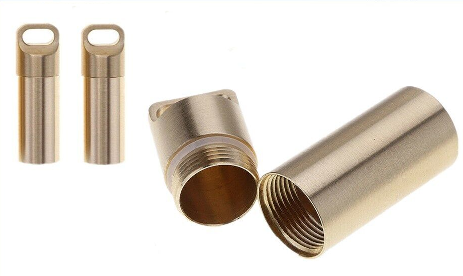 Waterproof Pill Box Case Brass Container Keyring Medicine Capsule Holder Small