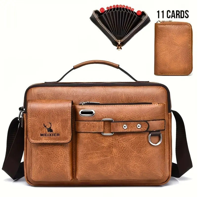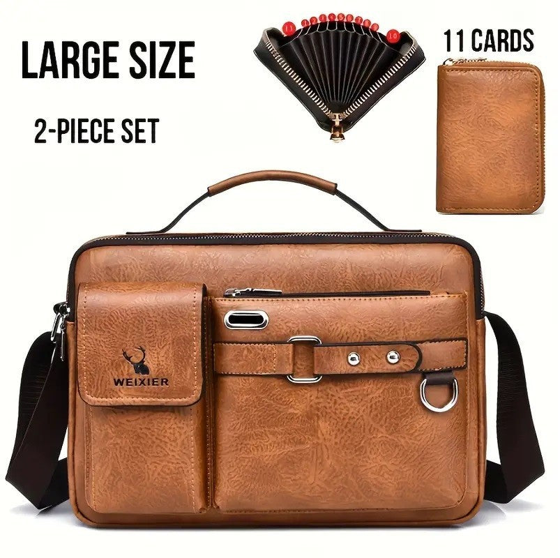 Package Includes 1x Business Crossbody Bag & Wallet - Light Brown
