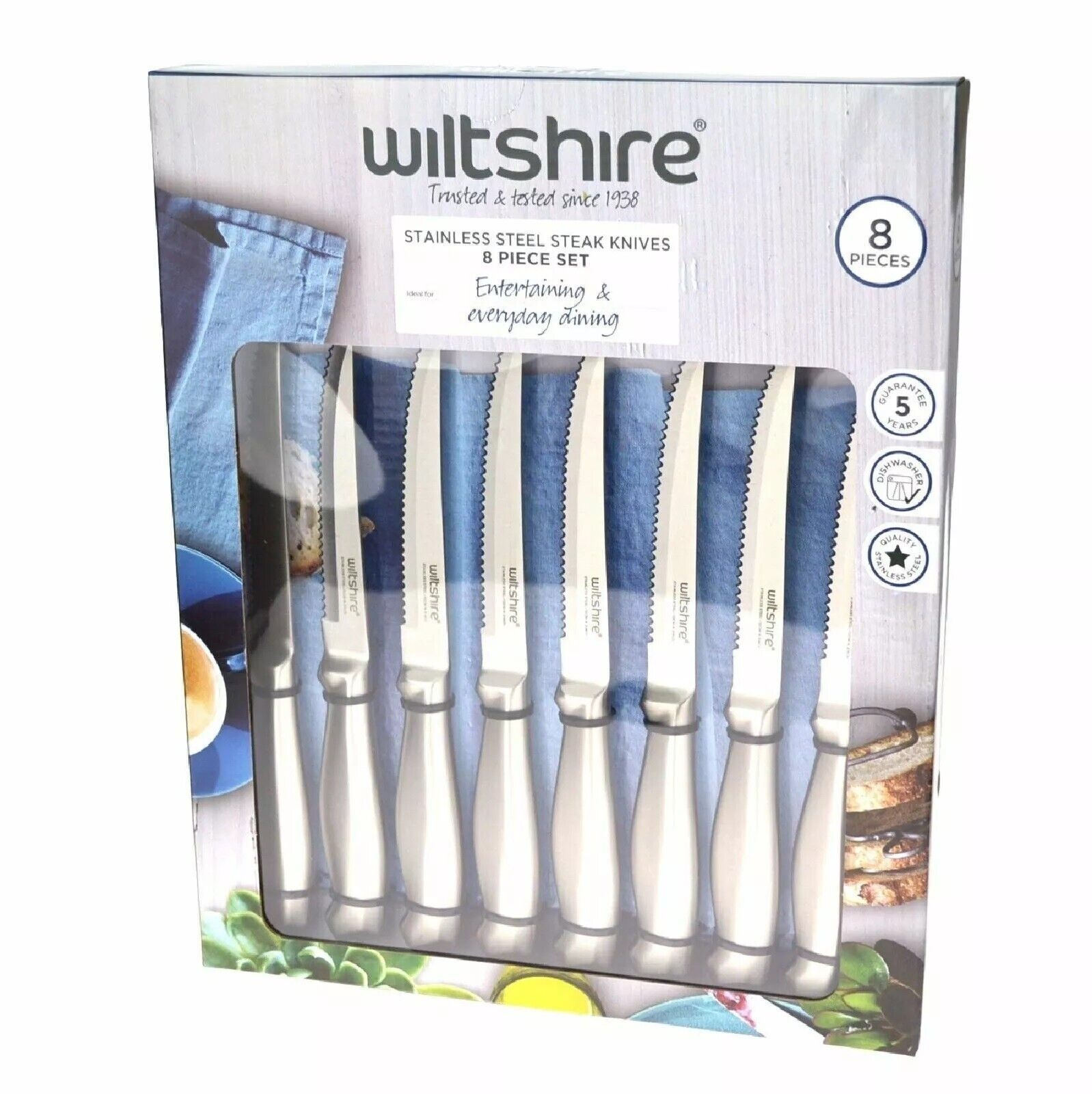 Package Includes: Wiltshire 8 Piece Stainless Steel 12cm Steak Knife Set | 8pc
