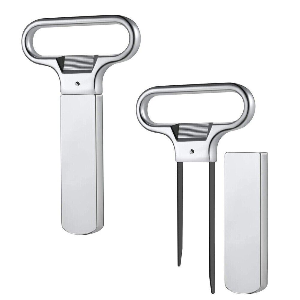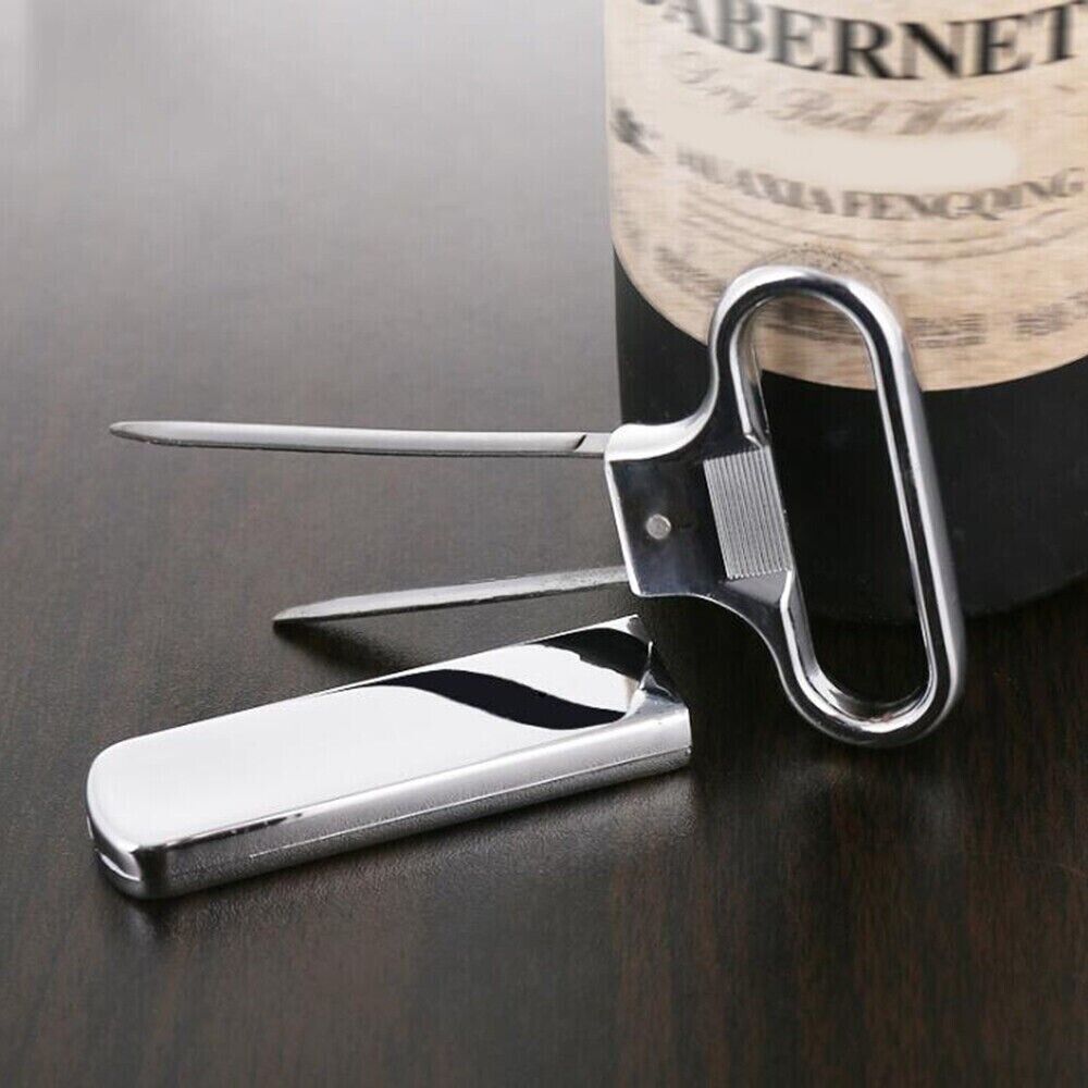 Wine Bottle Opener Cork Two-Prong Puller Damaged Cork Remover Chrome Sheath