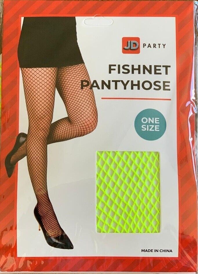 Women Fishnet Stockings Party Costume Dance Wear Leggings Neon 1980s - Yellow