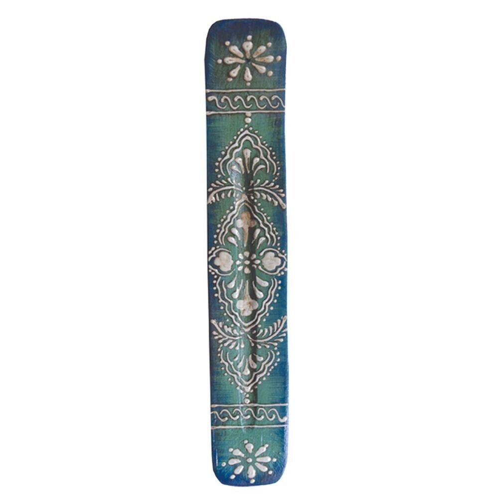 Wooden Ash Catcher Incense Burner Holder Incense Sticks Painted Floral Green