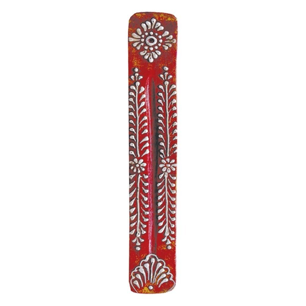 Wooden Ash Catcher Incense Burner Holder Incense Sticks Painted Floral Red