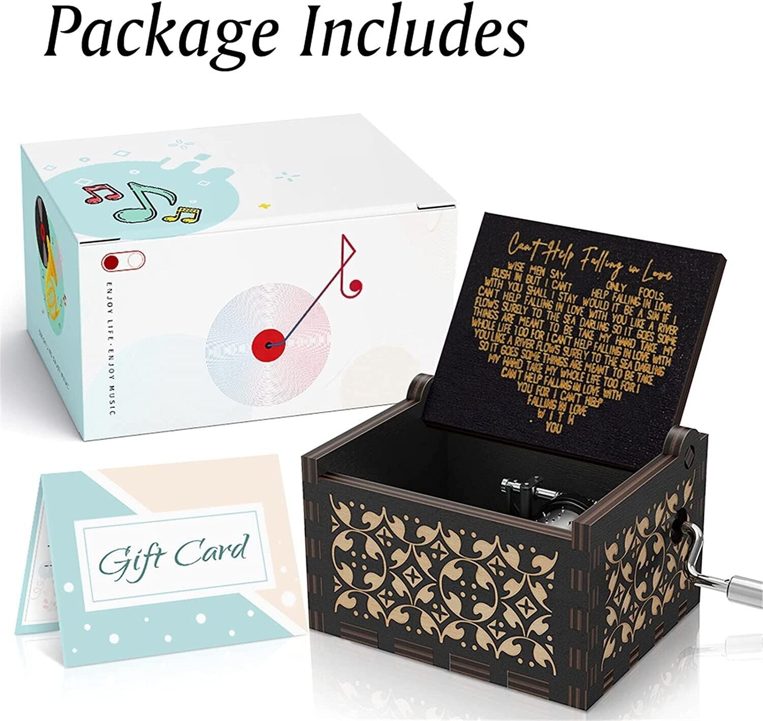 Package Includes: 1x Wooden Music Box "Can’t Help Falling in Love"