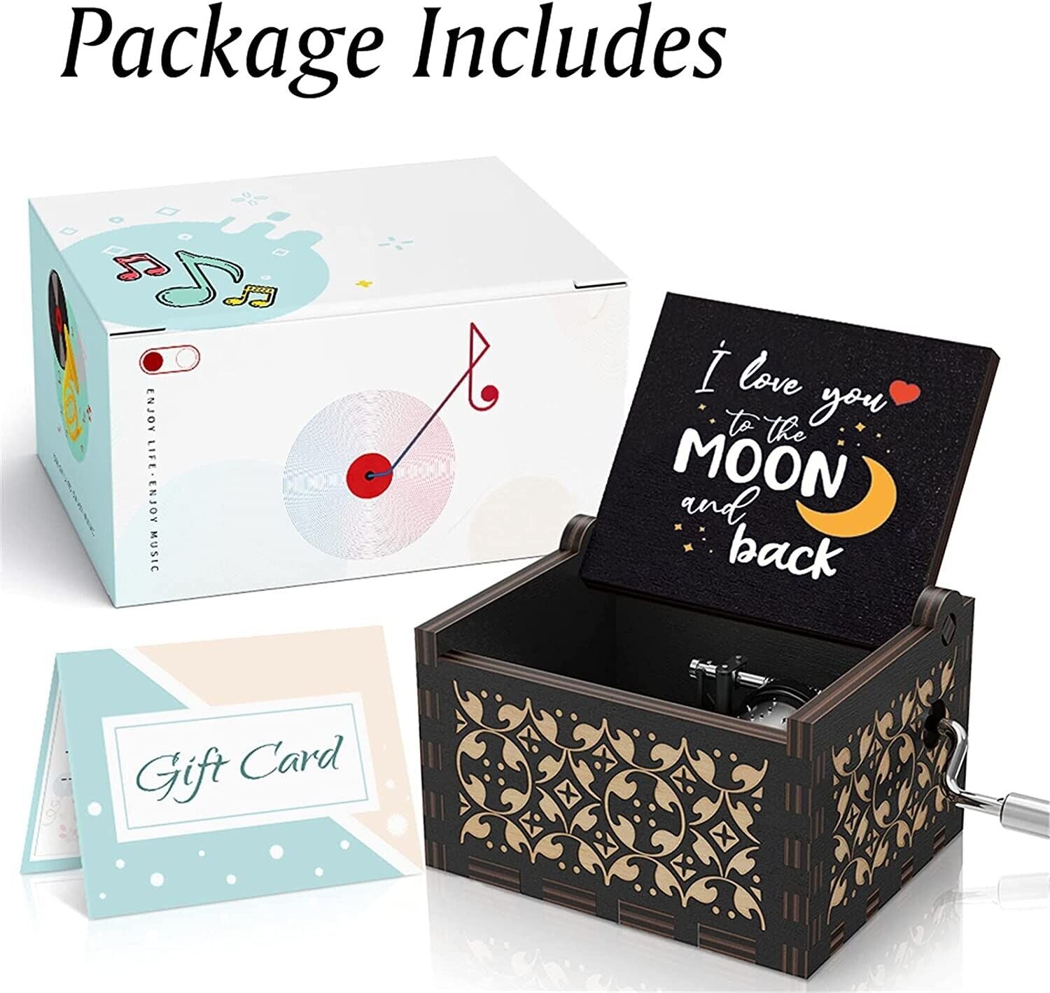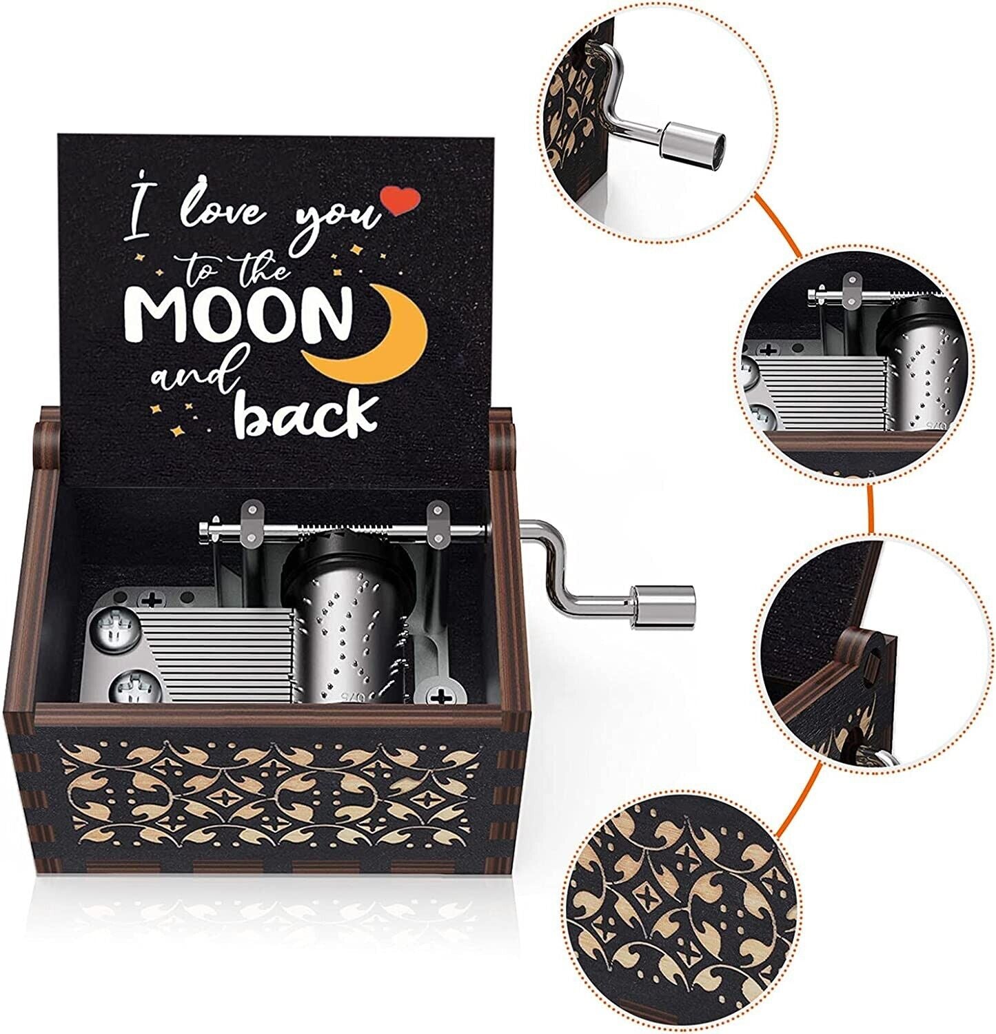 - Classical music: The theme of the music box is "I love you to the moon and back". Music box inside engraved the words to show a mother's love to their children.