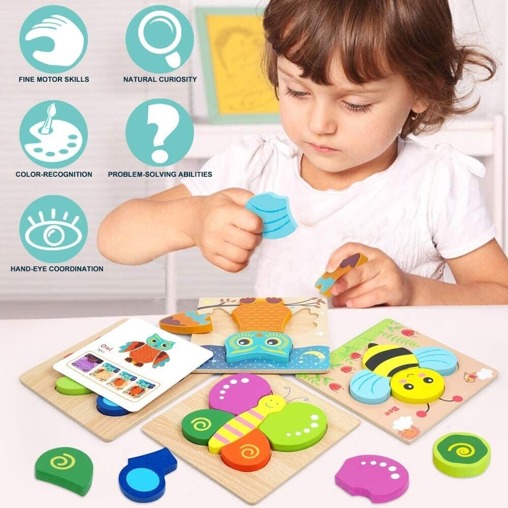 Wooden Puzzle Toddler Jigsaw Baby Early Learning Kids Educational Preschool Toys
