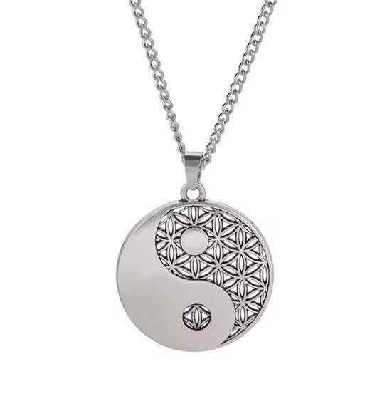 Yin-Yang Taichi Pendant Necklace Chinese Philosophy Taoist Symbol Flower of Life
