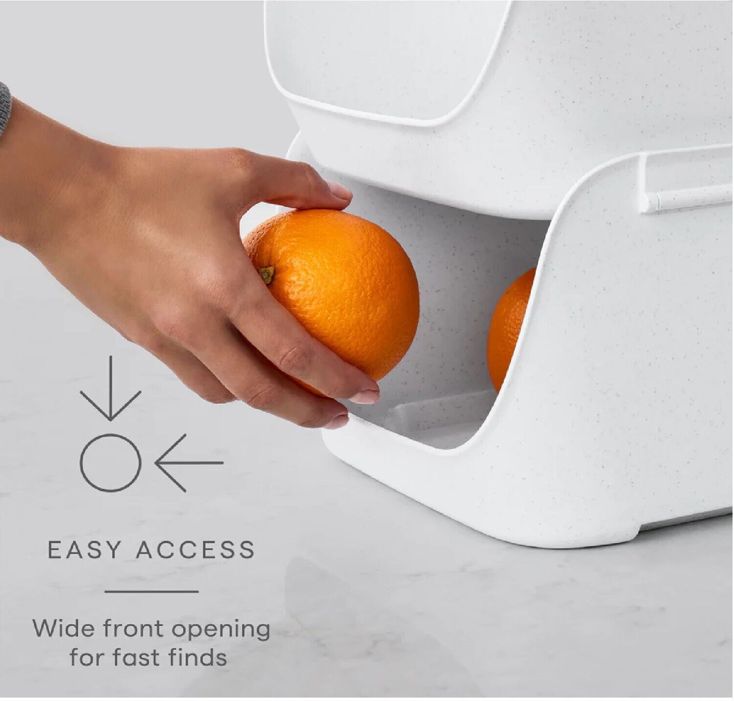 - STORES IT ALL: Organizes produce, dry goods, baking supplies, snacks and more